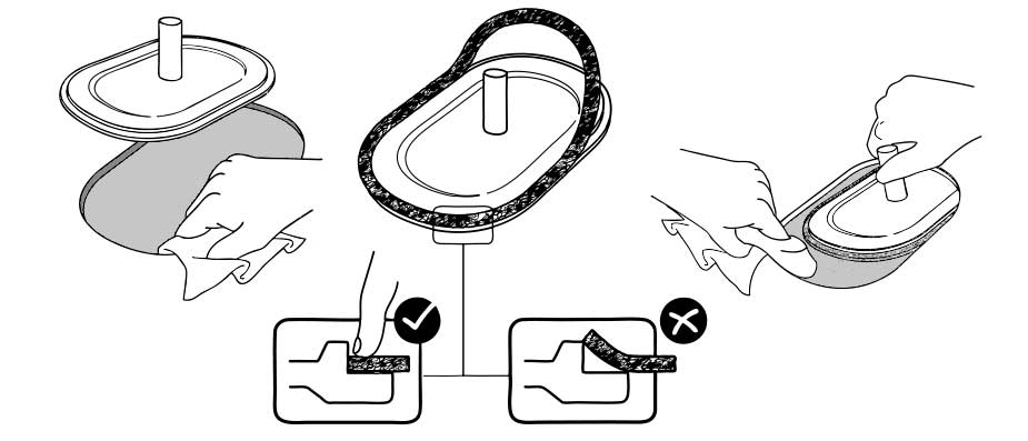Remove old gasket and thoroughly clean the surface on boiler and on cover plate. If the gasket being replaced is not a Topog-E® gasket it may be necessary to buff each surface. Place a new Topog-E® gasket on inspection cover plate, and make sure that the gasket is pushed down tight on the plate.