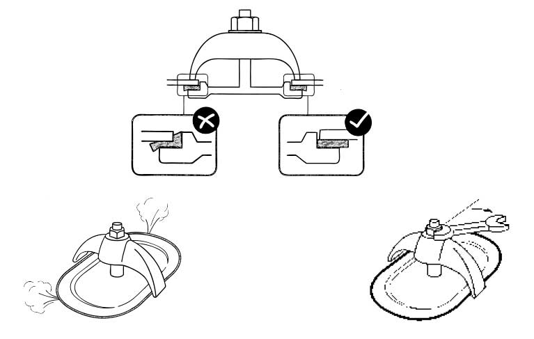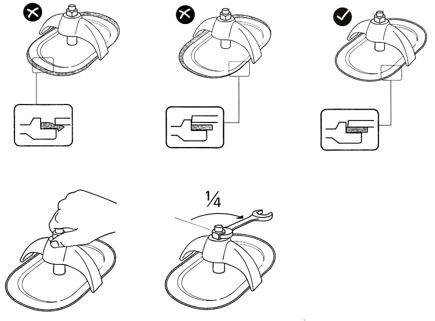 Set crab, then centre plate in opening and tighten nut enough to give a snug fit. Make it hand tight then increase pressure on the gasket with a quarter turn of a wrench.
