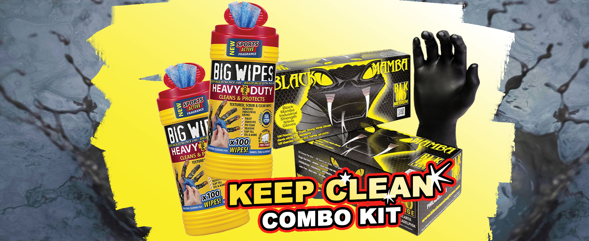 Perfect for engineers, this kit contains 2 tubs of Heavy Duty Big Wipes & two cartons of Black Mamba disposeable gloves, ensuring you're covered for any messy job that comes your way!